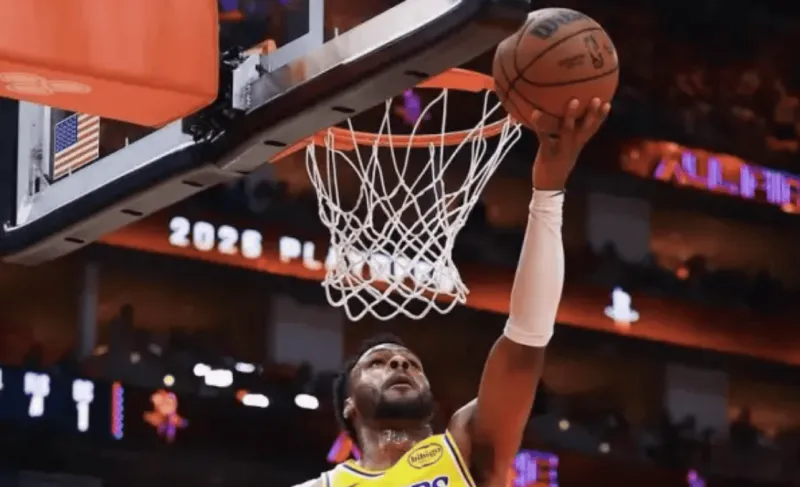 比赛第二节,湖人球员布朗尼-詹姆斯在反击中接到他父亲勒布朗-詹姆斯传出的空接上篮得分,赛后布朗尼接受采访谈起了这次父子连线。