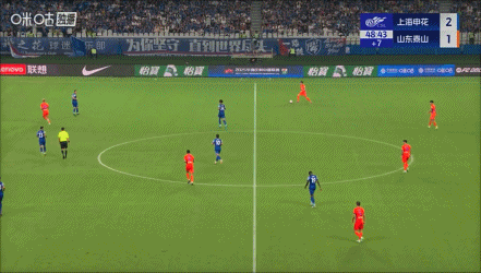 半场战罢,申花暂2-2泰山。