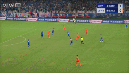 半场战罢,申花暂2-2泰山。
